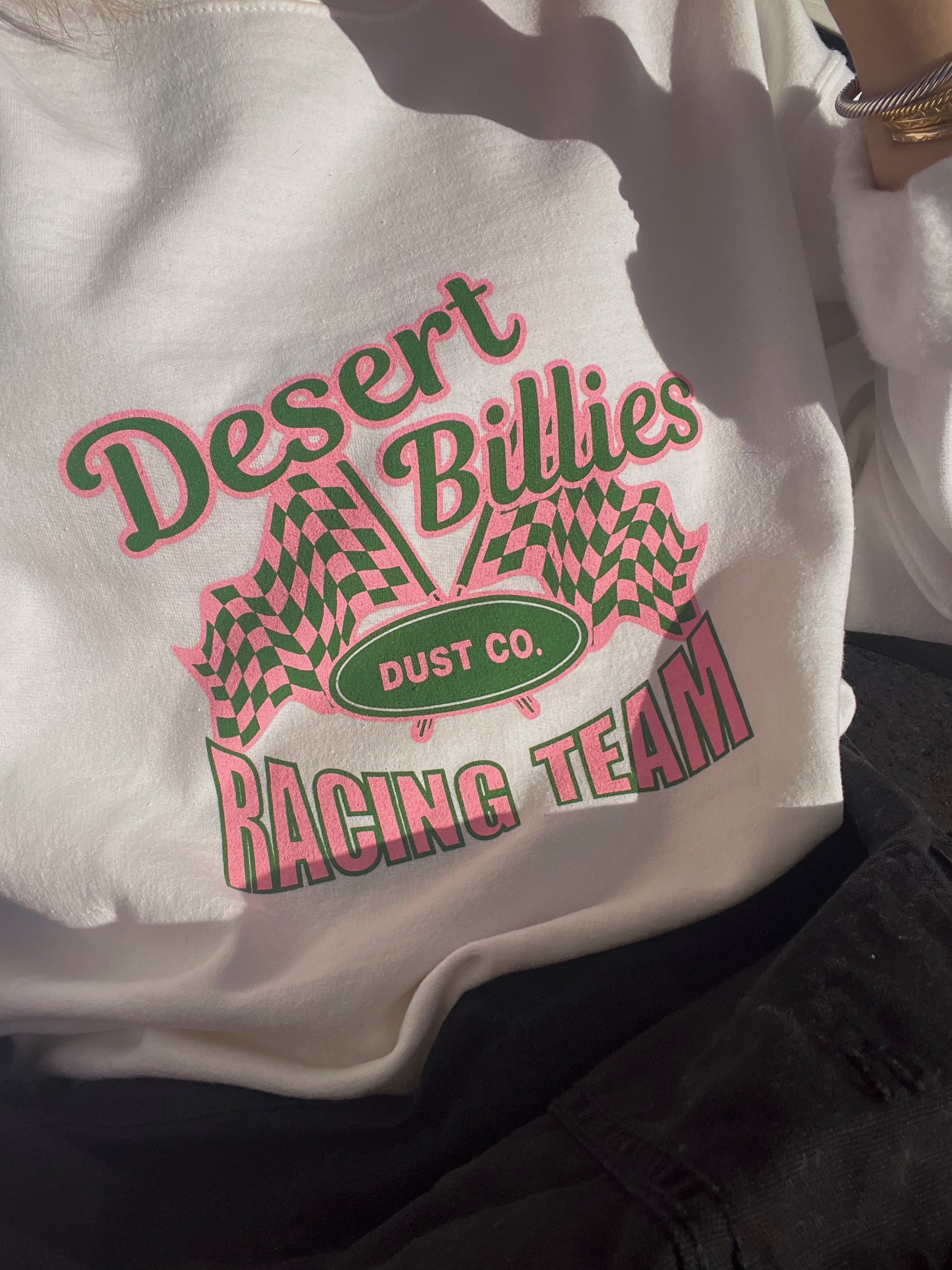 Pink and Green Racing Team Crewneck
