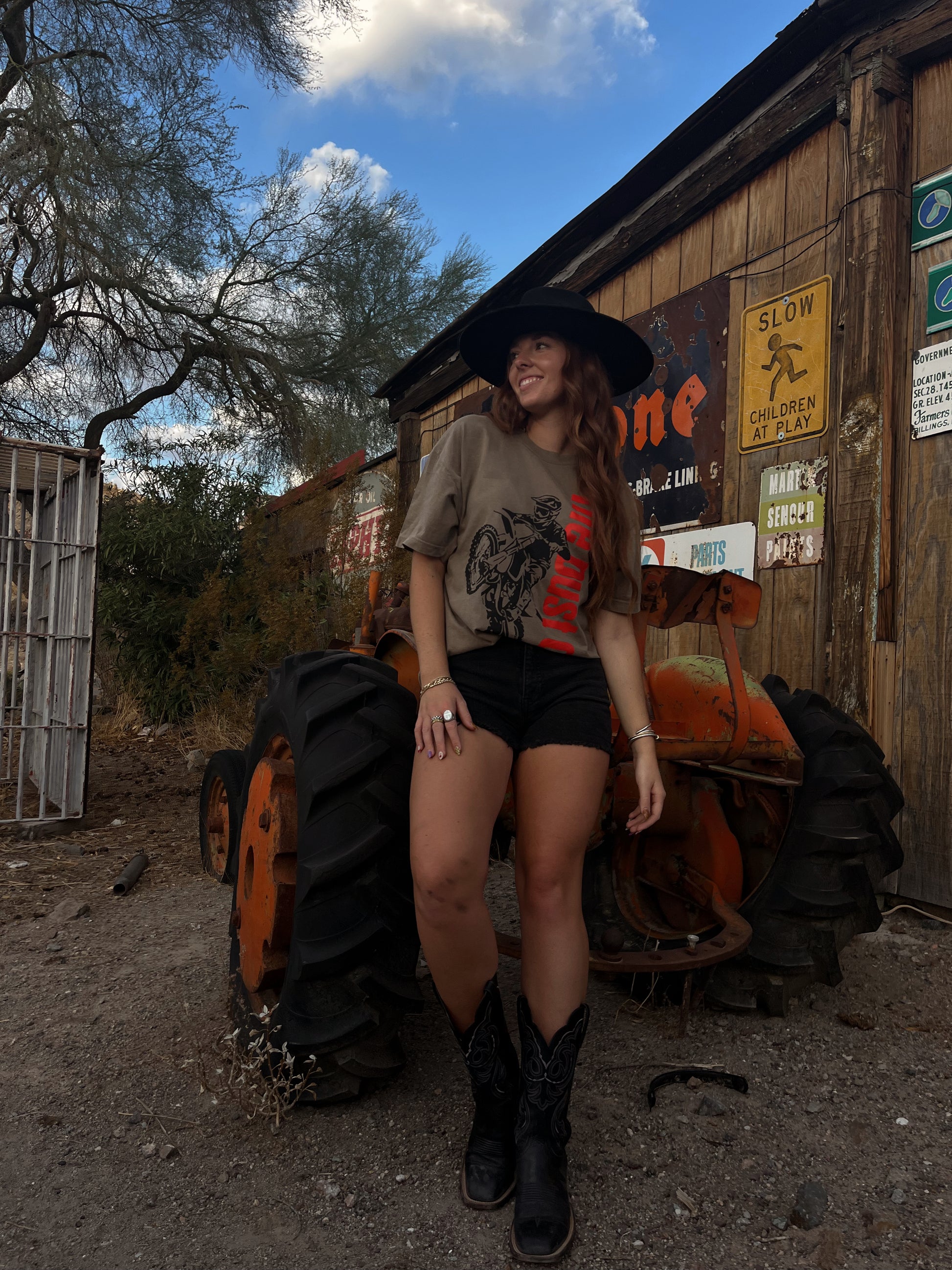 The "Wheelie Tee" is 100% heavy weight vintage cotton tee with a water base ink printed on the front.
